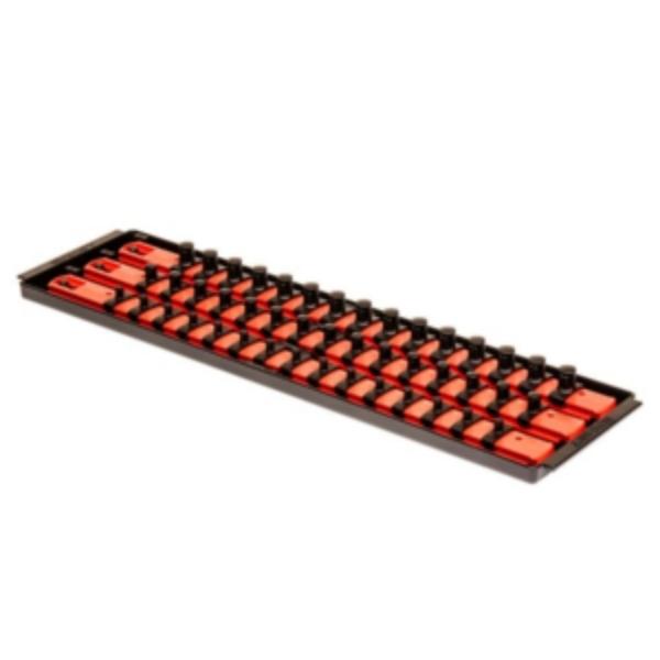 Universal twist-lock socket organizer tray with 3 socket rails. Holds 45 sockets.